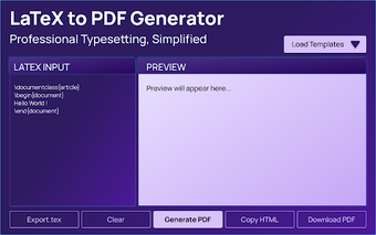 LaTeX to PDF Generator, Chrome tarayıcısı için geliştirilmiş hafif bir uzantıdır. Kullanıcıların LaTeX kodu yazmalarına, çıktıyı önizlemelerine ve doğrudan tarayıcı içinde PDF olarak indirmelerine olanak tanır. Uzantı, LaTeX içeriğinin girilebileceği yapılandırılmış bir editör arayüzü sunarak belgelerin temiz bir önizlemesini sağlar. Kullanıcılar, bölümler, kalın, italik, altı çizili metin, liste ve temel matematiksel ifadeler gibi yaygın biçimlendirme komutlarını destekler.